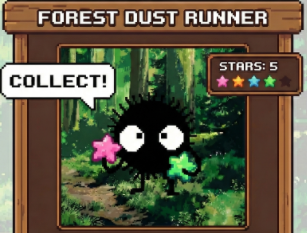 Take control of the soot spirit (Makkuro Kurosuke) as it races through a dynamically increasing forest landscape, avoiding obstacles and gathering stars. Inspired by the charming aesthetic of Studio Ghibli, this game delivers a simple yet progressively challenging experience.
